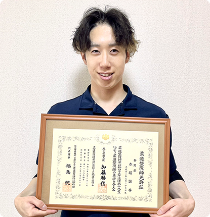 柔道整復師資格取得後、整骨院にて勤務。延べ1万人以上の患者さまによりそう。